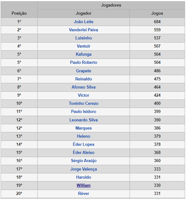 O mais difícil é chegar ao Top-16, posto ocupado pelo lendário Sérgio Araújo, que entrou em campo por 360 oportunidades. Mas o ‘Capitão América’ tem contrato com o Atlético até 2023. E ele gosta de quebrar marcas.