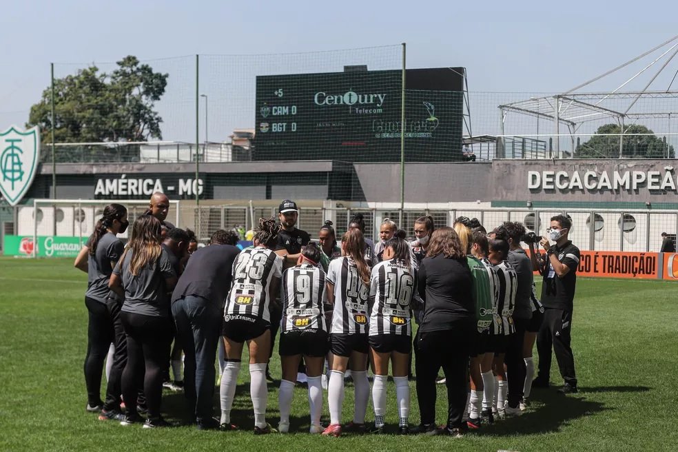 Presidente do Atlético-MG visita treino do futebol feminino, e exalta vitória no clássico
