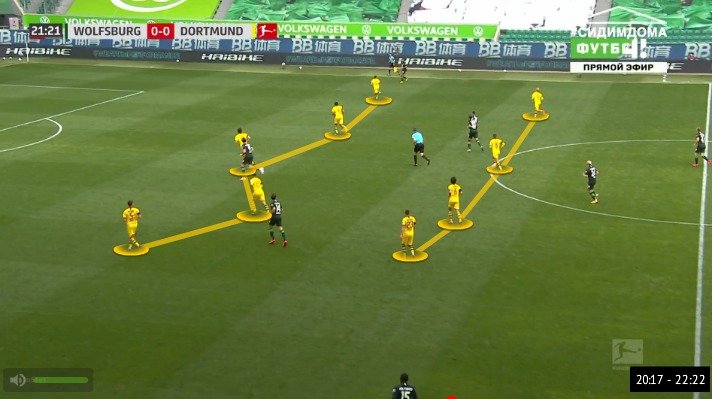 Foto: Bundesliga (Borussia Dortmund em organização defensiva 4-5-1).