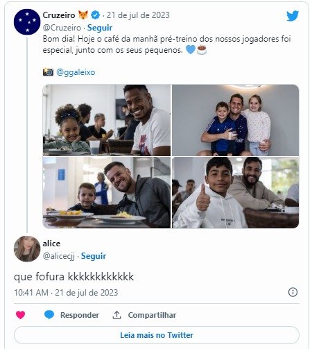 Na publicação do clube mineiro em suas redes sociais, comentários como “alerta de fofura”, “que fofura” e outros apareceram aos montes. Veja abaixo alguns deles: