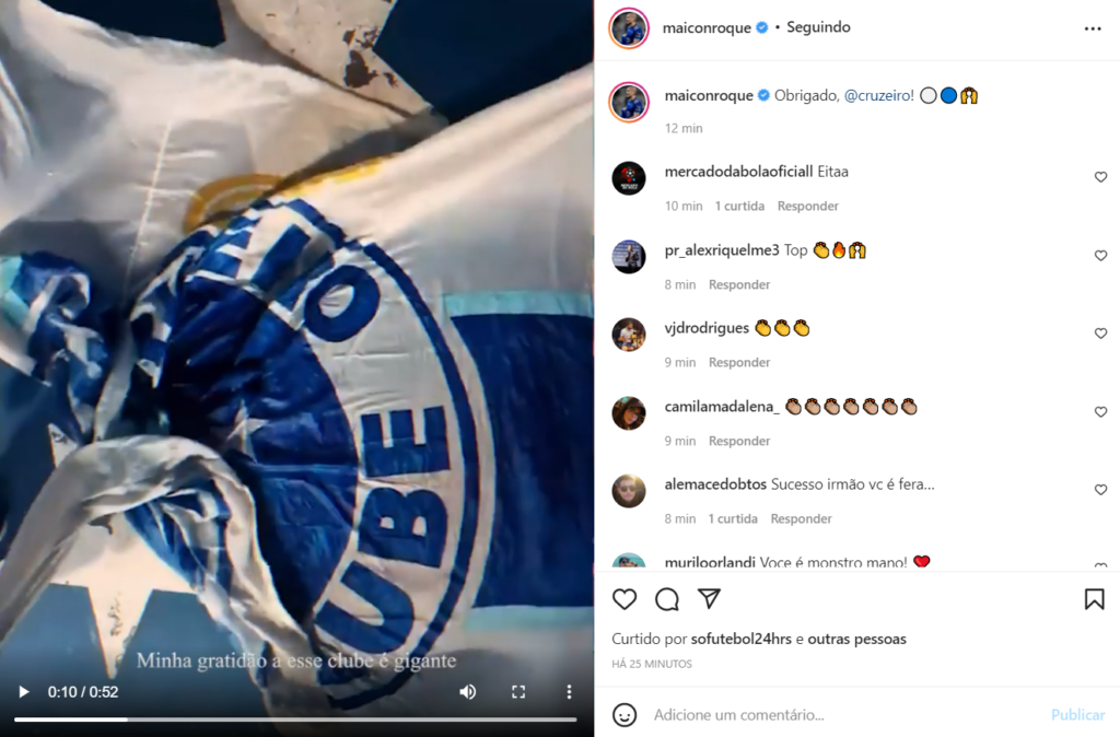 No vídeo, que contém imagens do defensor de 33 anos jogando pela Raposa no começo de sua carreira e em 2022, o jogador deixou clara sua gratidão pelo clube e lamentou não poder ficar.