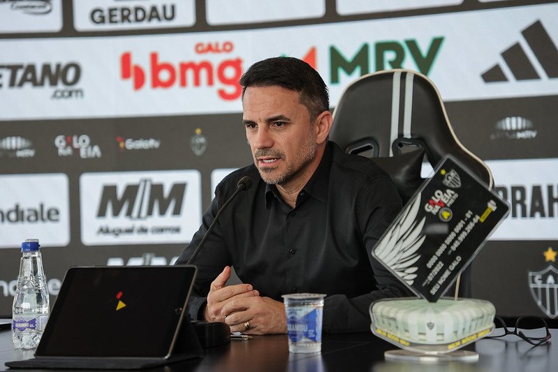 Rodrigo Caetano chegou ao Galo em 2021 e tem contrato com o clube alvinegro até o fim de 2026.