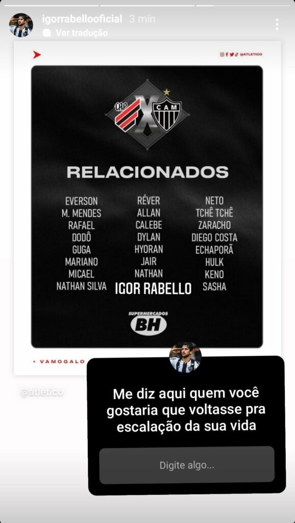 Porém, em meio aos relacionados, o nome do zagueiro Igor Rabello acabou excluído, o que gerou perguntas por parte da torcida sobre a sua situação física e condições para o jogo. Mas o clube mineiro confirmou algumas horas depois que o zagueiro viajou sim com o elenco para Curitiba.
