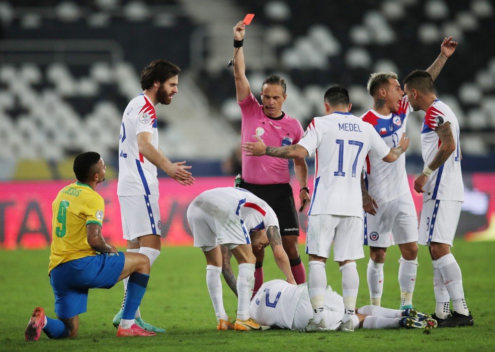 Após entrada violenta com uma “voadora” em um jogador do Chile, o atacante brasileiro do Manchester City desfalca a seleção na grande decisão.