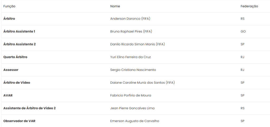 A CBF (Confederação Brasileira de Futebol) já definiu a equipe de arbitragem para o duelo entre Fluminense x Flamengo, nesta terça-feira (16), no Maracanã, às 21h, válido pela partida de ida das oitavas de final da Copa Betano do Brasil.