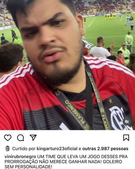 A postagem é da página do Instagram ‘Vini Rubro-Negro‘. No vídeo, o influenciador afirma que não se pode depender do goleiro Santos para nada e criticou as atuações de Pedro e Arrascaeta. Além disso, disparou contra a diretoria pela condução na negociação para contratar um goleiro.