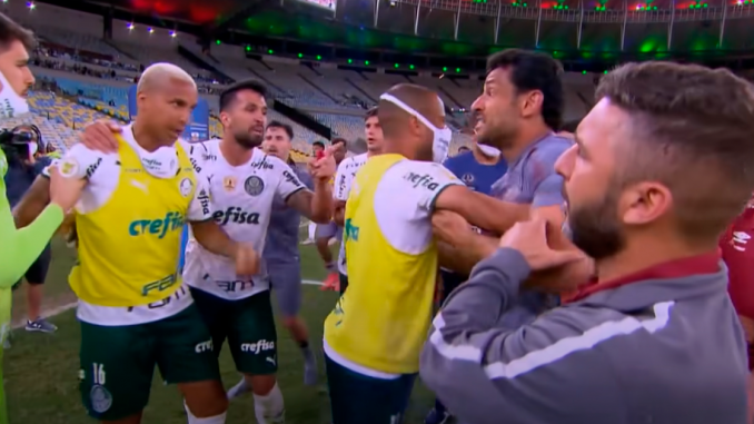 Deyverson recebeu o cartão amarelo já depois do apito final, segundo o árbitro, por “empurrar seu adversário”. A confusão, no entanto, continuou, envolvendo o palmeirense e o centroavante Fred, que também acabou expulso.