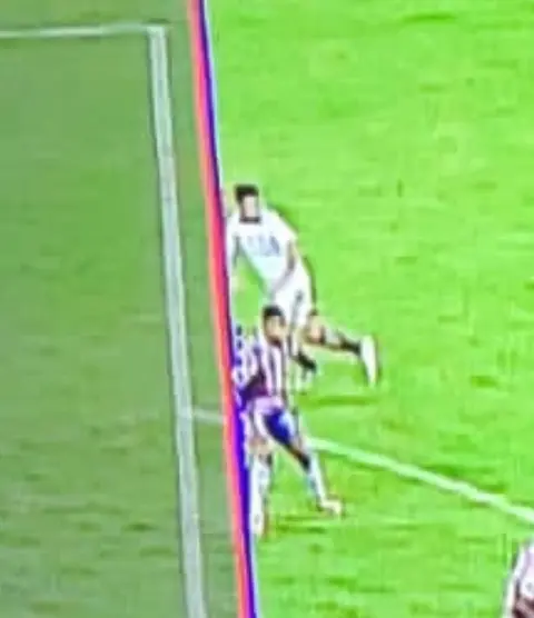 Por sua vez, no gol do Germán Cano, a imagem disponibilizada dá impressão que houve erro ao ser levado em consideração para mostrar o posicionamento o braço do argentino.