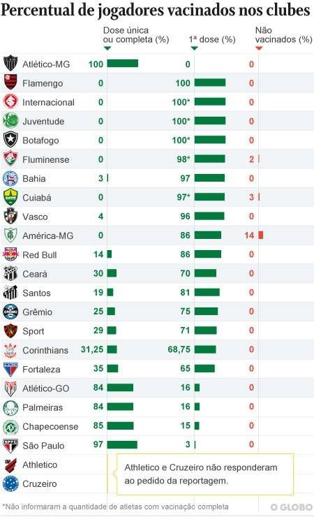 De acordo com o clube, o atleta não vacinado perdeu a data devido ao calendário de jogos e que sua ida à repescagem deve acontecer na próxima semana. O restante do grupo tomou ao menos a primeira dose.