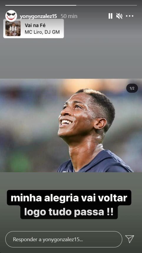 Há quase dois anos sem marcar, Yony González desabafa: “Minha alegria vai voltar”