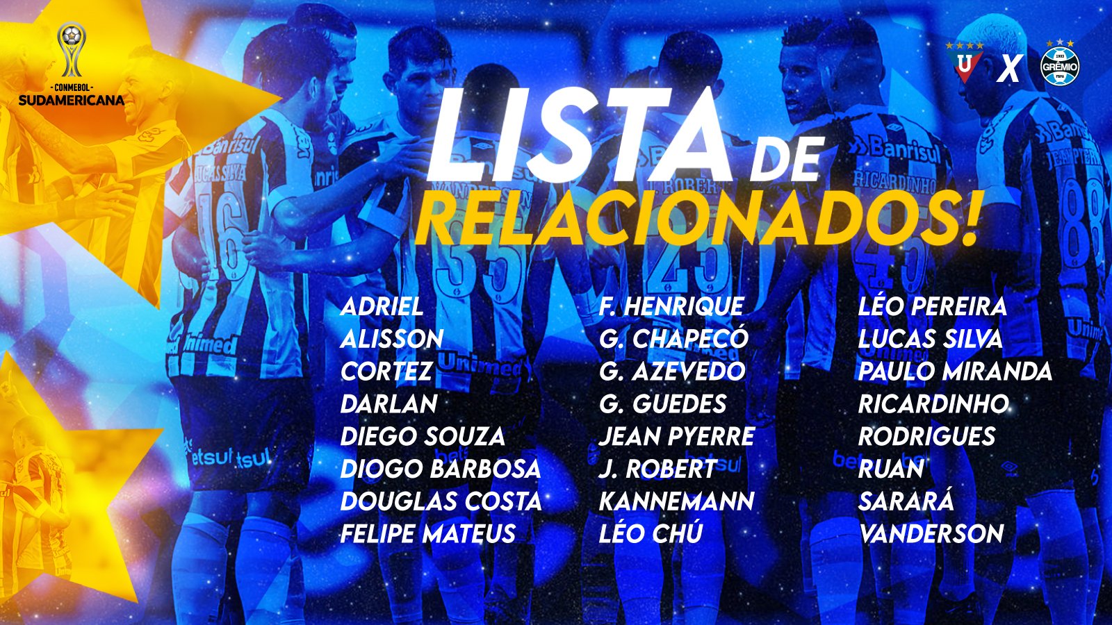 Assim, divulgou a lista de relacionados para o jogo de terça-feira. Também, informou sobre a situação do departamento médico gremista.