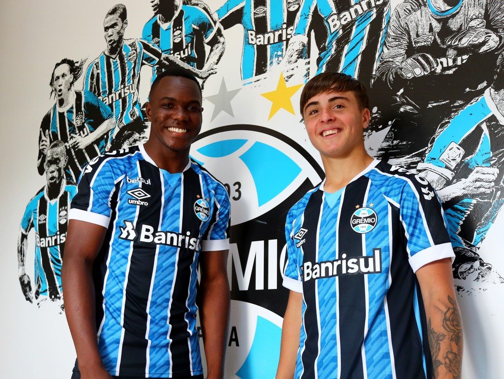Nesta quinta-feira, o Grêmio oficializou a contratação de dois jovens jogadores para reforçar as categorias de base. Se trata do centroavante colombiano Kevin Quejada e o meia uruguaio Mateo Barrios, ambos de 18 anos.