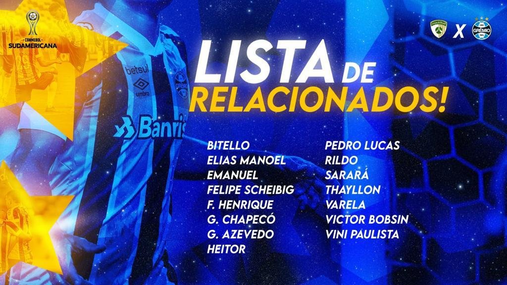 Além dos garotos da transmisão, Thiago Gomes poderá contar com alguns jogadores que já integram o time principal, como o goleiro Gabriel Chapecó, que fez sua estreia contra o Aragua, e o atacante Guilherme Azevedo. Confira a lista completa dos relacionados.