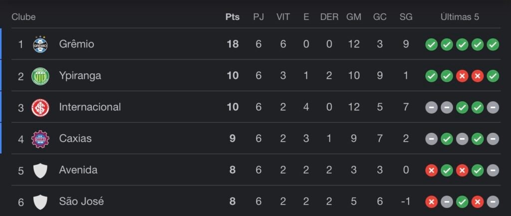 Com a vitória do Grêmio diante o Juventude nesta quinta-feira (9), a sexta rodada do Campeonato Gaúcho foi finalizada.