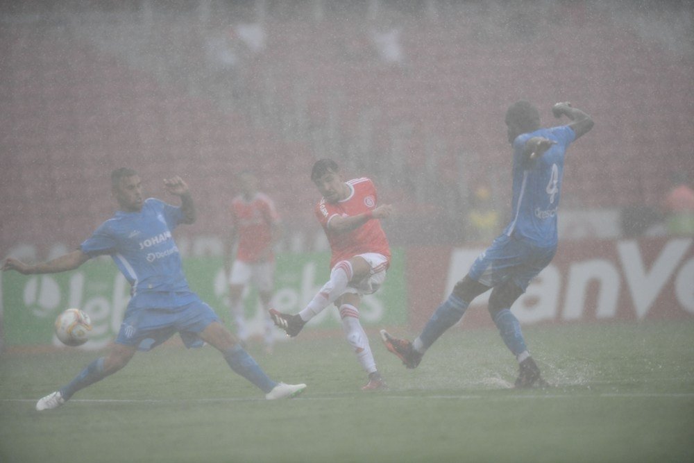 O Inter dominou a primeira etapa da partida com 63,9% da posse de bolas e 10 finalizações. Entretanto, o colorado só conseguiu apresentar perigo para o goleiro do Noia aos 27 minutos. Marcos Guilherme passou para Sarrafiore que chutou, mas a bola encontrou a trave. Logo depois, aos 31, novamente Sarrafiore caprichou no chute e colocou o goleiro Jacsson para trabalhar que evitou um golaço do argentino. Mesmo com a chegada da chuva o Inter continuou no ataque. Aos 43 minutos, as redes balançaram no Beira-Rio. Boschilia tocou para Heitor que de canhota marcou seu primeiro gol com a camisa colorada.