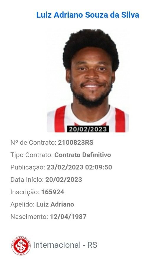 O Internacional anunciou recentemente a contratação de Luiz Adriano, que já está registrado no BID (Boletim Informativo Diário). O centroavante teve seu nome publicado nesta tarde e deve estrear no clássico Gre-Nal. A partida acontecerá no dia 5 de março, na Arena.