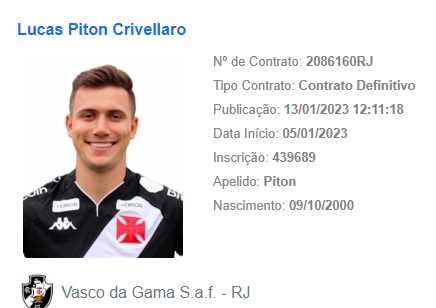 O Vasco da Gama já tem a inscrição regularizada de mais dois atletas, junto à CBF. O atacante Pedro Raul e o lateral Lucas Piton apareceram no Boletim Informativo Diário – BID – nesta sexta.