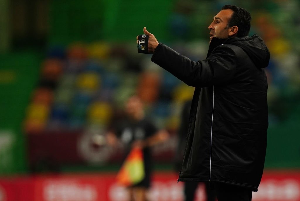 LISBON, PORTUGAL - DECEMBER 19: Sergio Vieira of SC Farense reacts during the Liga NOS match between Sporting CP and SC Farense at Estadio Jose Alvalade on December 19, 2020 in Lisbon, Portugal. (Photo by Gualter Fatia/Getty Images)