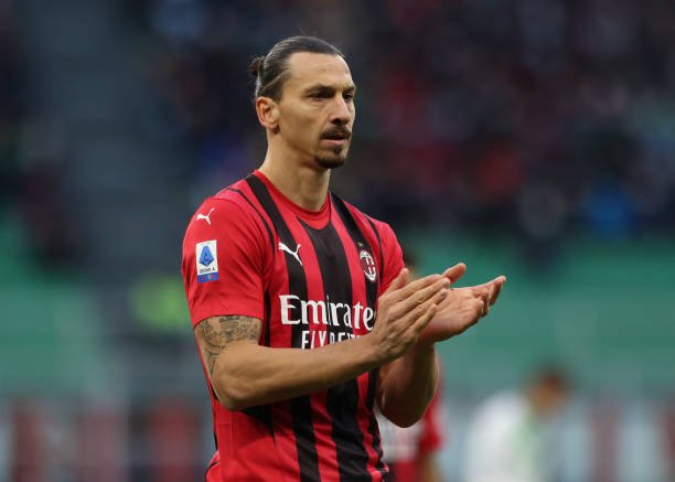 MILAN, ITALY - NOVEMBER 28: Zlatan Ibrahimovic of AC Milan applauds during the Serie A match between AC Milan and US Sassuolo at Stadio Giuseppe Meazza on November 28, 2021 in Milan, Italy. (Photo by Jonathan Moscrop/Getty Images)