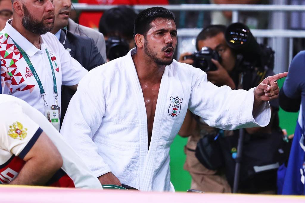 O Brasileiro naturalizado libanês Nacif Elias que disputou os jogos na categoria meio-médio(até 81kg) se descontrolou após ser eliminado por punição e se recusou a sair do dojo e cumprimentar o argentino. Questionar alguma decisão do árbitro é natural e a decisão dos árbitros realmente foi subjetiva. Mas a forma e a palavras usadas por Nacif foi totalmente contra qualquer princípio de um judoca.