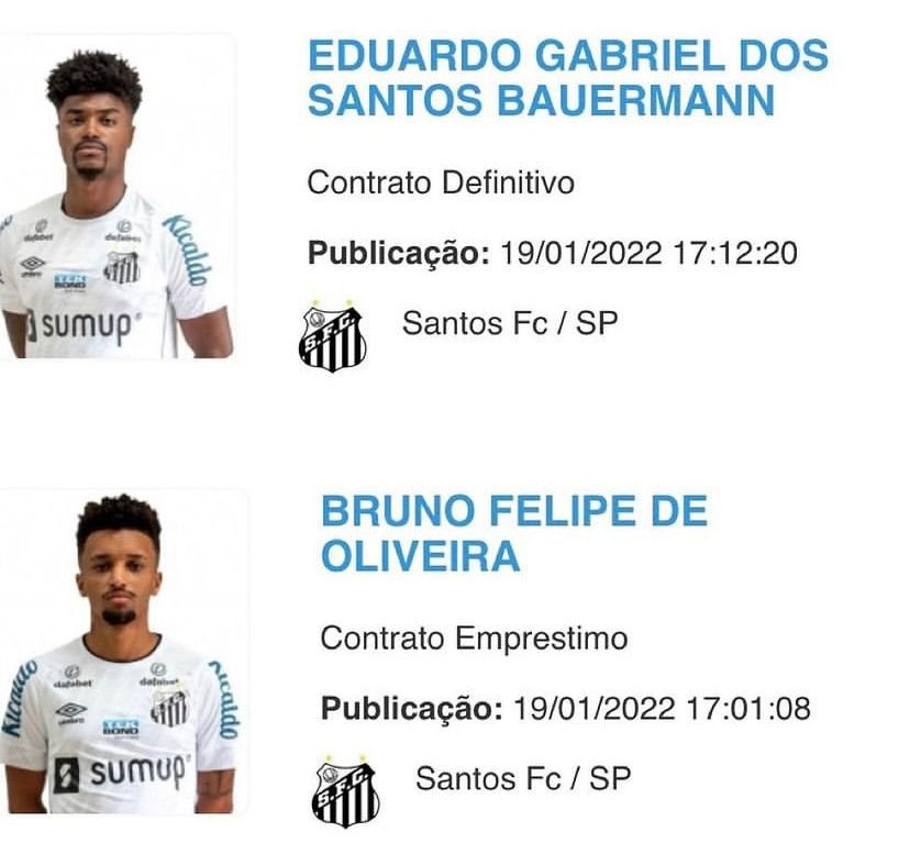 Na tarde desta quarta-feira (19), o zagueiro Eduardo Bauermann e o meia Bruno Oliveira tiveram seus contratos registrados no Boletim Informativo Diário (BID) da CBF. Com isso, estão liberados para estrear pelo Santos.