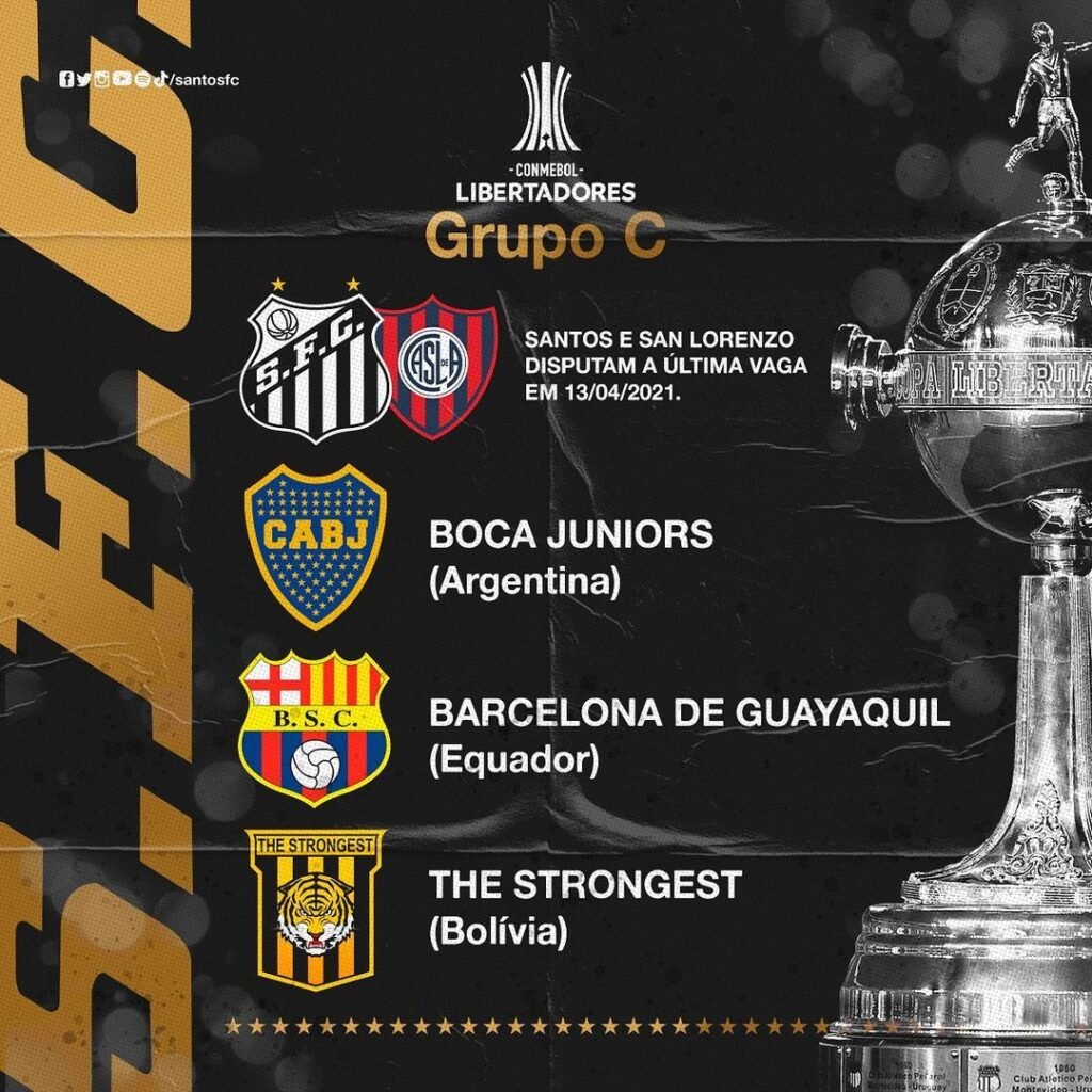 Após o sorteio da Conmebol para definir os grupos da Libertadores, o vencedor de Santos e San Lorenzo (ARG) caíra no seguinte grupo: