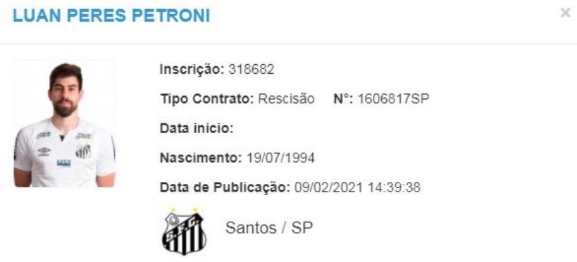O contrato de empréstimo do zagueiro Luan Peres foi rescindido. A atualização foi publicada no BID (Boletim Informativo Diário) da CBF. Confira: