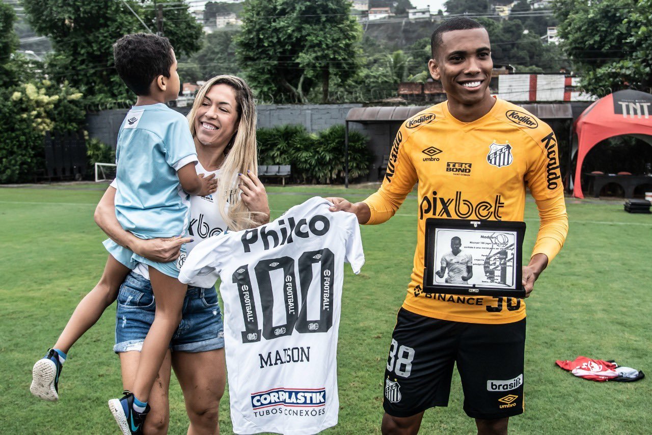 Madson recebe placa e celebra 100 jogos pelo Santos: “Orgulho que nem todos podem ter”