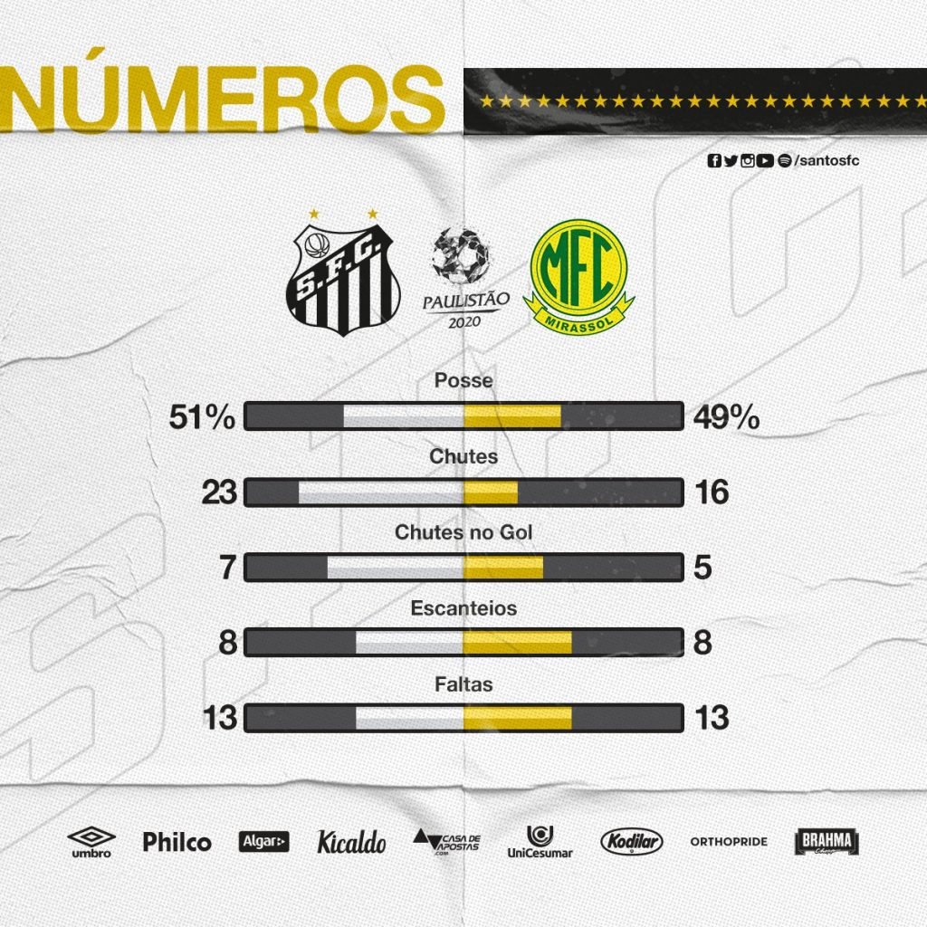 Arthur Gomes, menino da Vila, entrou do lugar de Eduardo Sasha. O Peixe diminuiu o ritmo e o Mirassol aumentou o seu equilibrando o jogo; Kaio Jorge entrou no lugar de Yuri Alberto. Mirrasol conseguiu chegar muito bem e com perigo pelo seu lado direito com Maranhão; Pará entrou no lugar do Madson.