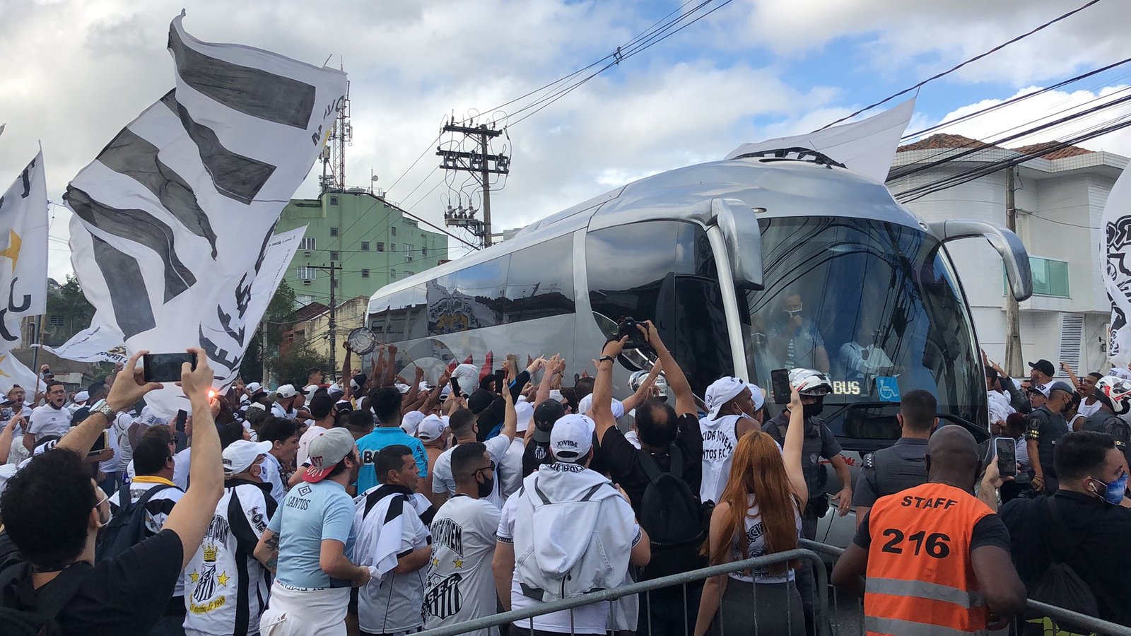 Torcida santista faz “corredor” na chegada do elenco na Vila Belmiro