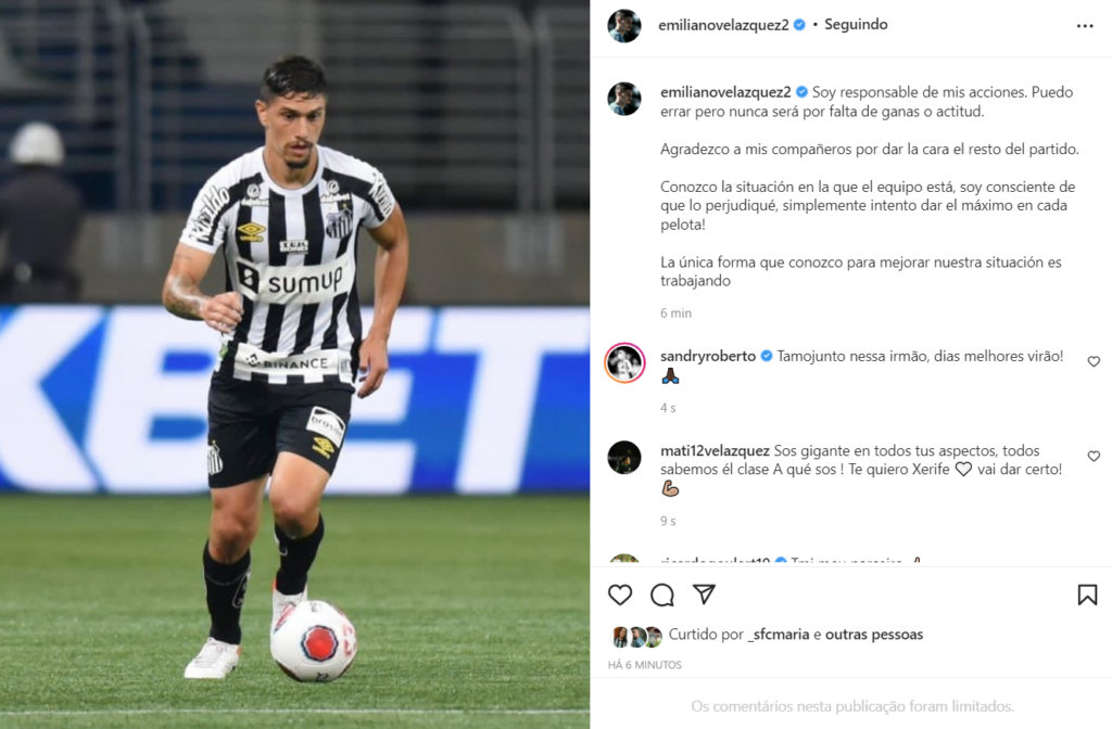 “Eu sou responsável por minhas ações. Posso errar, mas nunca será por falta de vontade ou atitude. Agradeço aos meus companheiros por terem enfrentado o resto da partida. Conheço a situação em que a equipa se encontra, tenho consciência de que a prejudiquei, simplesmente procuro dar o máximo em cada bola! A única maneira que conheço de melhorar nossa situação é trabalhando“, disse Velázquez, em suas redes sociais.