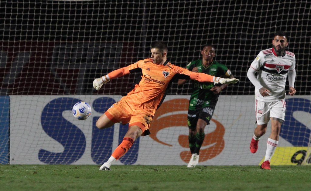 No empate contra o América-MG a defesa do São Paulo voltou a sofrer, assim como foi na vitória do último domingo contra o Atlético-GO por 2 a 1 no Morumbi. O São Paulo só saiu com o empate empate ontem graças á Tiago Volpi.