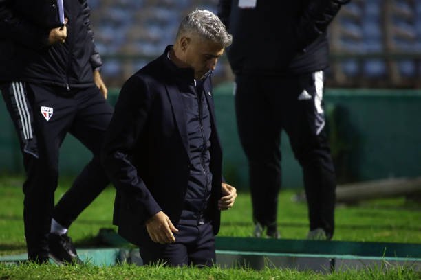 Crespo sai na bronca com a arbitragem após o empate com a Chapecoense no Morumbi.