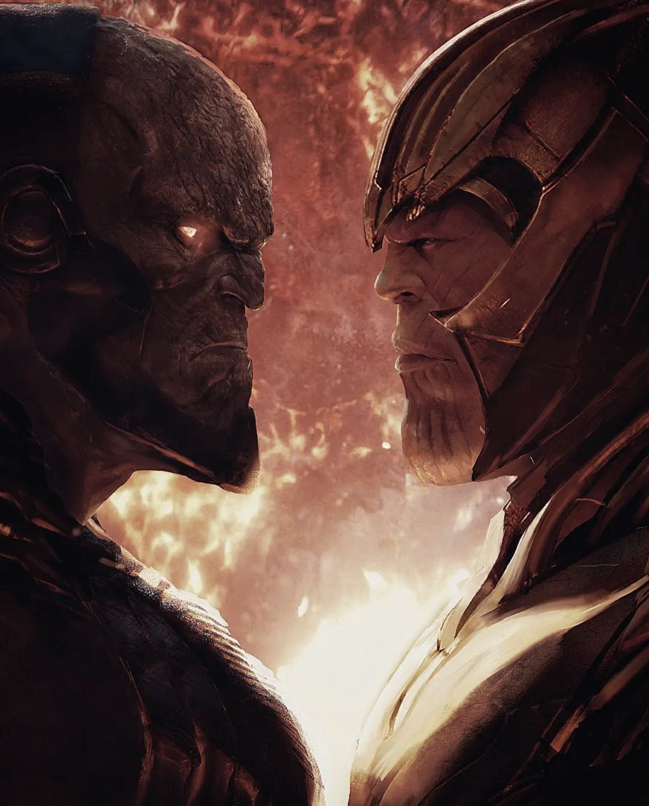 Darkseid surgiu como uma ameaça ao Universo DC em 1970. Já o Thanos apareceu pela primeira vez em 1972. O criador de Thanos pensava em dar à Marvel uma versão do Metron. No entanto, disseram a ele para “aumentar o personagem” até que ele se parecesse com Darkseid.