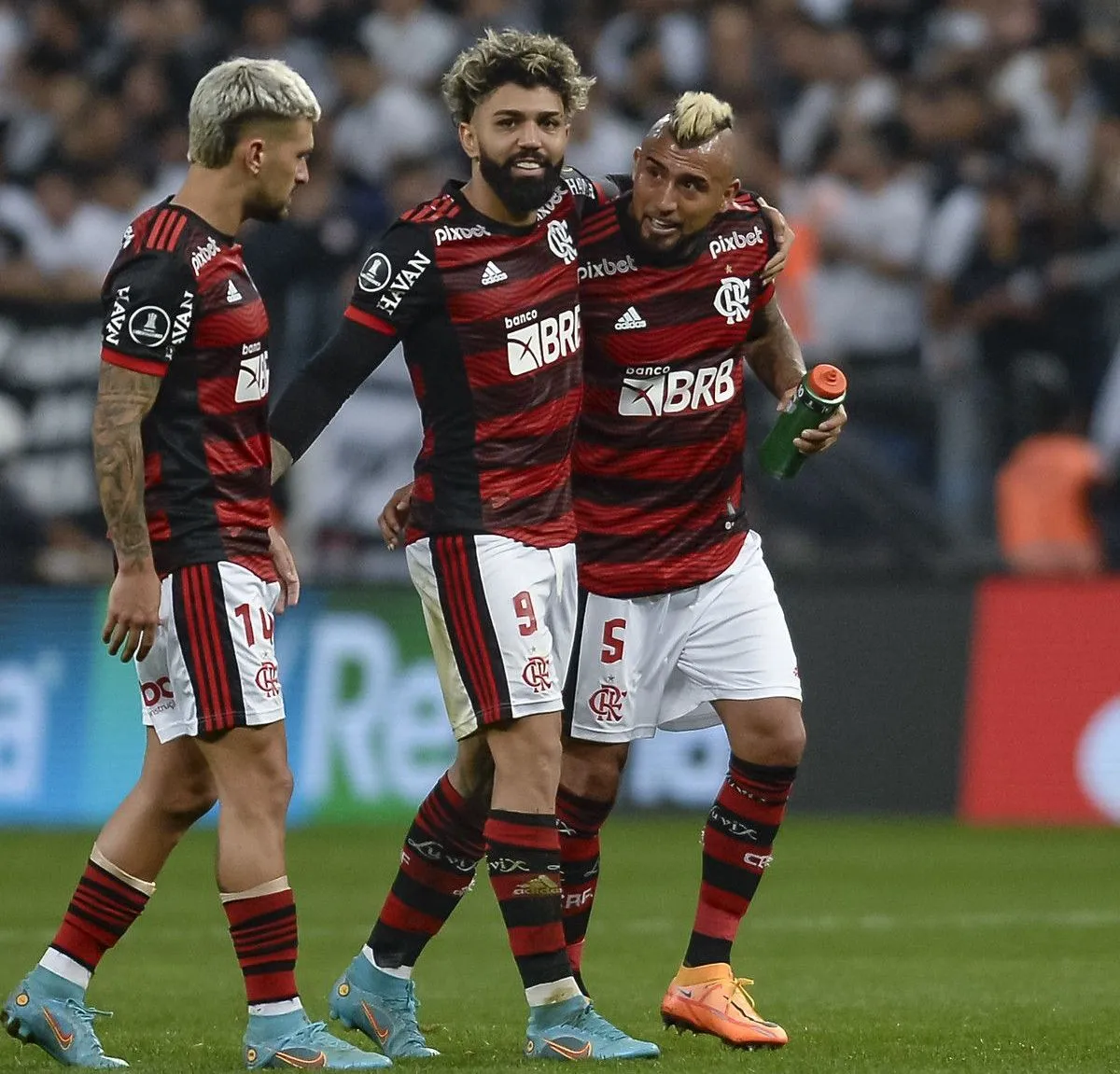 O técnico Dorival Júnior terá o retorno de sete jogadores que desfalcaram o clube na última rodada: Everton Cebolinha, Marinho, Pedro, Everton Ribeiro, Arrascaeta, Varela e Vidal.